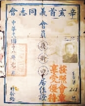 據(jù)文獻資料記載,辛亥首義同志會是辛亥革命紀念組織中最有影響的組織?箲(zhàn)勝利后,湖北籍的首義人員“覽締造河山之艱難”,擔憂“辛亥史跡,若不及早探詢,據(jù)事實錄,轉(zhuǎn)瞬人事代謝,酋軒何從采輯?”遂在1946年10月10日成立以居正為理事長的辛亥首義同志會。首義同志會創(chuàng)辦了首義學校,招收首義人員遺屬就學。成立辦事處,印制辛亥首義同志會會員名冊,表列姓名、籍貫、住址等名目,并收集首義歷史資料。擁有“兩證”的會員除了可證明參加過辛亥首義革命外,還可享受政府的系列優(yōu)撫政策。當時登記會員有1644名。目前,根據(jù)掌握的名冊,參加革命的“首義老人”已全部辭世。