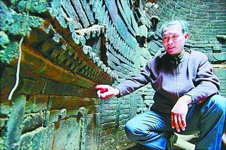 該座宋墓位于南水北調焦作段普濟路一處工地上。記者昨日到達現場時,南水北調焦作段施工人員正在幫助文物工作人員保護發(fā)掘現場。據焦作市文物工作隊古建專家趙德才介紹,圓形宋墓在焦作市所發(fā)掘的宋墓中比較罕見,這座宋墓上所雕刻的建筑結構清晰可見,對研究宋代建筑有一定價值。