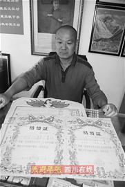 “這張海報(bào)有人出價(jià)萬元,我都不舍得賣。”昨日上午10時(shí)許,見有人來訪,50歲的李杰拿出自己最愛的寶貝——一張梅蘭芳宣傳畫,這是新中國成立前印制的。宣傳畫上,京劇大師梅蘭芳面帶微笑,依靠在一張沙發(fā)上,宣傳畫的題詞為郭沫若!靶∥輭Ρ谏,都是精選出來的。在我家的保險(xiǎn)柜里還有近千幅海報(bào),各種各樣的都有!崩罱苷f。