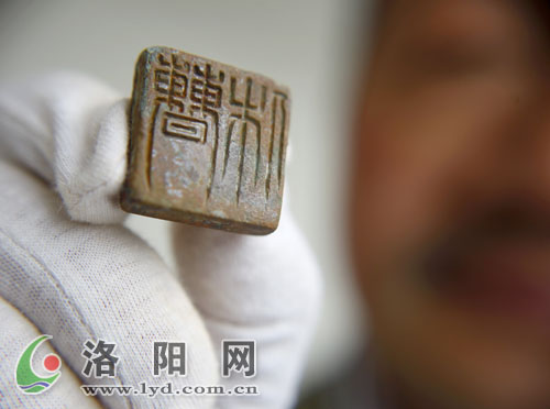 后室西南角的地面上,一方銹跡斑斑的印章赫然“躺”在地上。“我們當(dāng)時(shí)激動(dòng)得要命,考古中能得到文字性的東西,簡(jiǎn)直就是驚天發(fā)現(xiàn)!”李光夫笑著說(shuō),當(dāng)時(shí),大家小心翼翼地將印章用密封袋保存,然后給領(lǐng)導(dǎo)打電話“報(bào)喜”。
