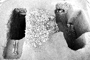 地埂坡墓群盜掘也相當(dāng)嚴(yán)重。2007年,省文物考古研究所對(duì)被盜墓葬進(jìn)行了發(fā)掘,共清理土洞墓5座。5座墓葬的結(jié)構(gòu)大致相同,由墓道、照壁、墓門(mén)、前甬道、前室、后甬道、后室等構(gòu)成,有的前室附設(shè)耳室,地表都?xì)埓嬗蟹馔良皦L圈,其中3座墓葬中繪制壁畫(huà)。
