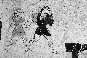 地埂坡墓群位于高臺(tái)縣河西村南3公里黑河南岸的戈壁臺(tái)地上,是河西走廊發(fā)現(xiàn)的又一處重要的魏晉時(shí)期墓葬群。該墓葬最大的“亮點(diǎn)”是:墓室內(nèi)有內(nèi)容豐富、技藝精湛的壁畫(huà),表現(xiàn)了農(nóng)耕、畜牧、宴飲等內(nèi)容,出現(xiàn)了多個(gè)少數(shù)民族形象,這是以往河西魏晉墓中不多見(jiàn)的,為研究河西地區(qū)歷史、中西文化交流以及民族融合等提供了珍貴的資料。