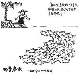 1957年,華君武推出了“人民內(nèi)部諷刺漫畫”。他針對大躍進浮夸風創(chuàng)作了《疲勞過度癥》,針對動不動給人扣大帽子創(chuàng)作了《杜甫檢討》,針對長篇空洞發(fā)言創(chuàng)作《誤人青春》,針對生造簡化字創(chuàng)作《倉頡認字》,針對多子女創(chuàng)作《大“小家庭”》,批評相聲水平不高創(chuàng)作了《聽相聲?》等,都給讀者留下了極為深刻的印象。“內(nèi)部諷刺漫畫”在“文革”中成為“罪證”,遭到長期批判,華君武被迫擱筆10年,但”文革“后,這把”匕首“依然鋒芒犀利,創(chuàng)作出一系列批評諷刺時弊和人性弱點的漫畫。