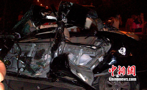 5日夜11時40分許,揚州市東區(qū)解放北路文昌花園北大門發(fā)生一起惡性交通事故,一輛牌照為蘇KB9652本田轎車從解放北路由西向東行駛,由于車速過快為避讓與前方行駛的出租出追尾時,肇事車駕駛員緊急剎車,在剎車時向右打了一把方向,轎車頭朝南車尾朝北向前滑出30多米后撞上停在路邊的大卡車尾部,停在路邊掛在檔上的大卡車被撞發(fā)動起來,向前開動了200米左右撞在一輛停放在路北側(cè)的一輛中型卡車停下。肇事轎車上四名年輕男子均受傷,其中兩人傷勢嚴(yán)重。