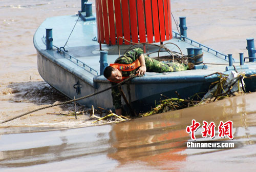 因此次洪峰對(duì)庫區(qū)航道的影響相對(duì)重慶主城較小,因此庫區(qū)萬州段航道沒有實(shí)施禁航,江面上還有大量的船只通行。為此,萬州的航道職工每天將花去近16小時(shí)專門清除懸掛在航標(biāo)上的渣草,恢復(fù)被渣草掀翻的航標(biāo),以免影響輪船航行的安全。