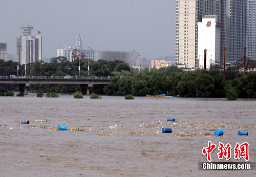 中新網(wǎng)吉林7月28日電 (許斯綺)7月28日,吉林省永吉縣境內(nèi)發(fā)生特大洪水,永吉縣經(jīng)濟(jì)開發(fā)區(qū)新亞強(qiáng)化工廠一批裝有三甲基一氯硅烷的原料桶被沖入松花江中,事件發(fā)生后,吉林省迅速采取有力措施,在松花江沿途設(shè)置8道防線進(jìn)行攔截。吉化公司已派出200多人組成的專業(yè)搶險(xiǎn)隊(duì)伍協(xié)助當(dāng)?shù)卣驌啤?table border=0 cellspacing=0 cellpadding=0 align=left>