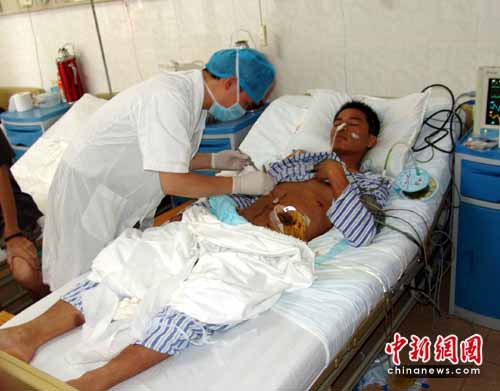 6月25日,剛脫離生命危險的三隊員在醫(yī)院接受采訪。他們說,以前都與盜割電纜蟊賊遭遇過,但這次是第一次遇見如此瘋狂歹徒。