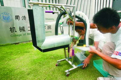 “保潔機”將代表上海參加10月份在武漢舉行的第三屆全國大學(xué)生機械創(chuàng)新設(shè)計大賽全國總決賽。這些天,幾名設(shè)計者正在對奧運場館的保潔工作進(jìn)一步調(diào)研,完成后將提出改進(jìn)方案,進(jìn)一步提高保潔機的去污能力。(實習(xí)生 楊通梅 記者 張智麗)