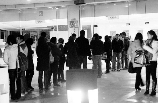 演出前幾天,浙大城市學院的百度貼吧已經到處是求票的帖子,演出當天同樣是從晚上5點半左右,隊伍已經從二樓劇場門口排到了一樓。大門口甚至還出現(xiàn)了“ 黃牛票”,兩元一張的票價被炒到五元甚至更高。而門口檢票的同學透露說,他們還收到了十幾張假票,是學生自己去彩印店打印的“偽版”門票。