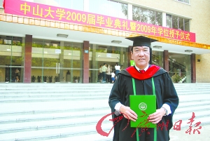 中山大學(xué)昨日舉行的兩場畢業(yè)典禮出了兩個人物,第八場畢業(yè)典禮上出了個66歲的碩士,第十一場畢業(yè)典禮則出了個66歲的學(xué)士。同樣是60多歲的年紀,兩位老人同樣選擇了重回校園,背后有什么樣的動力支撐著他們?