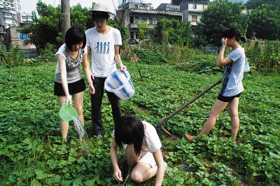 通過篩選,小庚和另外3名女生入選了這次活動(dòng),巧合的是,四人竟然全是網(wǎng)上偷菜游戲的資深玩家。7月18日,四名同學(xué)就搭上了商報(bào)特派專車,來到了南岸區(qū)彈子石的一處菜園,開始了他們的種菜活動(dòng)!