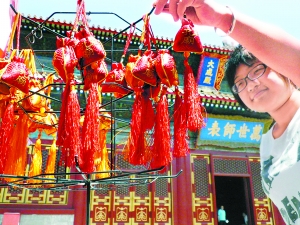 本報訊(記者李環(huán)宇)今天8時30分,孔廟和國子監(jiān)博物館的大門剛剛打開,專程趕來的市民吳先生便徑直來到位于孔廟大成殿西南側(cè)的祈福包售貨處,興沖沖地為今年參加高考的女兒購買了一只黃色的祈福包。隨著高考的臨近,有著“金榜題名”、“狀元及第”等吉祥寓意的祈福筆、祈福包等物件受到了考生和家長的青睞,而全國聞名的北京孔廟和國子監(jiān)博物館出售的祈福包更是受到家長和考生們的追捧,有的家長甚至坐飛機專程從外地趕來孔廟,只為“求”個祈福包。