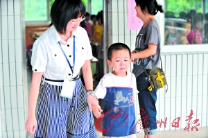盡管開學(xué)前曾在家長(zhǎng)的陪伴下來過一次課室,一年級(jí)(1)班的小峰還是走到了一年級(jí)(2)班,前來“探營(yíng)”的小峰媽媽怎么都找不到小峰,正著急時(shí),才發(fā)現(xiàn)小峰在另外一邊的課室乖乖地排隊(duì),由于表現(xiàn)好額頭上還被老師獎(jiǎng)勵(lì)貼了一朵小花。被老師和媽媽請(qǐng)出課室后,小峰才恍然大悟發(fā)現(xiàn)自己走錯(cuò)了課室,委屈得鼻子一酸,在老師和媽媽的連夸帶哄下才回到了一年級(jí)(1)班坐下。