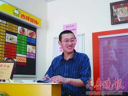 經(jīng)過(guò)考察,王欣欣得知吉祥餛飩店是一家加盟連鎖店,操作流程簡(jiǎn)單,適合他創(chuàng)業(yè)初期的選擇。家是臨沂的他選擇了把店開(kāi)在濟(jì)南!半x家近,而且這邊有個(gè)親戚!