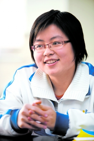 每天晚上看完央視《新聞聯(lián)播》就去學(xué)習(xí),一直學(xué)到11點(diǎn)半,這是蘭天瑩雷打不動(dòng)的習(xí)慣,而且一堅(jiān)持就是五六年。不過(guò),她并不是兩耳不聞窗外事的書(shū)呆子。這不,連《蝸居》都關(guān)注著呢,“現(xiàn)實(shí)題材,寫(xiě)出了年輕人的困惑和煩惱,大考之后我一定好好看看六六怎么揭露現(xiàn)實(shí)生活的,現(xiàn)實(shí)生活又是多么殘酷的,郭海藻淪為小三不能一味地批評(píng)她,她的出現(xiàn)應(yīng)該有現(xiàn)實(shí)原因的!闭娌焕⑹俏目凭C合排名第一,蘭天瑩說(shuō)起當(dāng)代文學(xué)作品來(lái)頭頭是道,架在鼻梁上的小眼鏡因?yàn)樵捳Z(yǔ)的激動(dòng)也一翹一翹的。