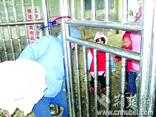 荊楚網(wǎng)消息 (楚天都市報(bào)) (特約記者楚雄 通訊員東風(fēng))昨日上午,天門(mén)多祥鎮(zhèn)中心小學(xué)校門(mén)被建筑商鎖上,致千余學(xué)生無(wú)法進(jìn)校。無(wú)奈之下,老師只得組織學(xué)生按順序從門(mén)縫中擠進(jìn)校園上課。等最后一名學(xué)生進(jìn)校時(shí),時(shí)間已過(guò)去一個(gè)多小時(shí)。