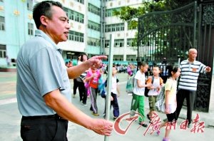 天河區(qū)培智小學(xué)位于天河客運(yùn)站附近的元崗路上,來(lái)往人流較為復(fù)雜,學(xué)校有小學(xué)生和初中生1500多人,主要生源為外來(lái)工子弟。昨天下午3時(shí)半,這里的學(xué)生已在準(zhǔn)備放學(xué),門(mén)口處有數(shù)名行政人員看守。記者一靠近校門(mén),就有一名身穿保安制服的人員迎上前詢(xún)問(wèn)來(lái)意。