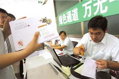 本報(bào)訊(記者張艷)“我們提前錄取的8個(gè)專業(yè)全招滿了,還擴(kuò)招了140人!弊蛱,本市熱門的職業(yè)學(xué)校北京市交通學(xué)校招生辦老師李佳拎著4個(gè)大袋子共計(jì)790封錄取通知書交到郵局。今天,首批中考錄取通知書將以掛號信的方式送到考生手中。