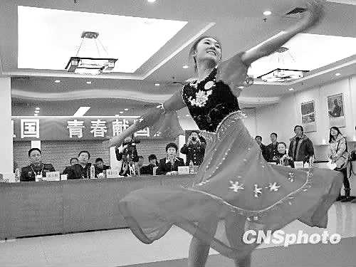 8時(shí)10分,面試開始,第一個(gè)上場(chǎng)的陳曉琴做了簡(jiǎn)單的自我介紹,大屏幕顯示她抽中的問題是:如何能做一個(gè)合格的軍人。陳曉琴說,要做一名合格的軍人不但要嚴(yán)明紀(jì)律、聽從指揮,還要團(tuán)結(jié)同志。接著她表演了跆拳道,并拿下了北京市女兵面試的第一個(gè)分?jǐn)?shù)——26分,全部考試,陳曉琴用了8分鐘。 8時(shí)50分,來自民族大學(xué)舞蹈學(xué)院的5號(hào)應(yīng)試者朱瑜上場(chǎng)了。回答了相關(guān)的問題后,她拿出了一把藍(lán)色的綢扇,跳起了一套她自編的舞蹈,婀娜的舞姿征服了全場(chǎng)的觀眾,也征服了9位評(píng)委,她得了28.57的高分,這個(gè)分?jǐn)?shù)也是海淀考區(qū)全天考試的最高分。與她同樣得了最高分的還有清華大學(xué)的王曉麗。