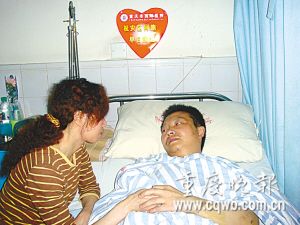 地震被埋的北川中學(xué)教師楊漢德,病床上一直自責(zé)沒(méi)能參與搶救自己的學(xué)生!暗结t(yī)院兩天了,他一直不愿說(shuō)話!弊蛳挛,西郊醫(yī)院外二科病房,院長(zhǎng)陳和平為傷員楊漢德遞上了慰問(wèn)金,守候在病床前的妻子張鈺,看著表情木然的楊漢德,也不禁黯然神傷。
