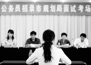 和往年不同的是,每名考生面試后,考官組當場予以評分,并在下一名考生面試之后公布上一名考生的分數(shù)?忌謹(shù)現(xiàn)場貼在考場走廊上。其次,我省對部分熱門崗位的面試,還首次進行電視現(xiàn)場直播,如湖北省地稅局的面試現(xiàn)場。此外,每個考官組由7名考官組成,其中招錄單位4人,市里選派3人,還組織人大代表、政協(xié)委員及群眾代表到面試現(xiàn)場觀摩;各地、各招考部門紀檢監(jiān)察機構設立投訴舉報電話,對各個環(huán)節(jié)全程監(jiān)督。