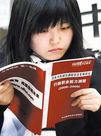 高等教育大眾化時(shí)代,公務(wù)員考試成了百萬(wàn)雄師爭(zhēng)過(guò)的新“獨(dú)木橋”。2009國(guó)家公務(wù)員考試已落幕,人們不僅念叨77萬(wàn)多人趕考1萬(wàn)多個(gè)崗位的盛況,也關(guān)心這場(chǎng)考試的命題思路,對(duì)接下來(lái)的省公務(wù)員考試會(huì)有哪些導(dǎo)向作用。因?yàn)樵诤芏啻髮W(xué)生眼里,“國(guó)公”就像練兵場(chǎng),真正的戰(zhàn)場(chǎng)在省公務(wù)員考試。