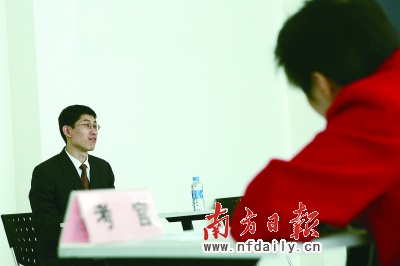 記者在現(xiàn)場看到,不少警校出來的考生都身穿警服來面試,這群“準(zhǔn)警察”在西裝革履的考生群中尤為醒目,但他們在進(jìn)入考場上交手機(jī)等通訊工具時(shí),隨即被要求把警號(hào)摘下,以免在面試過程中透露個(gè)人信息,影響考試的公平性。“原本希望在面試中贏取一些形象分和同行分,但效果并不大!币幻忌鷮τ浾哒f。參與面試的7名考官中,只有兩名是來自公安系統(tǒng)的同行,其余5名皆是來自其他行局的考官。