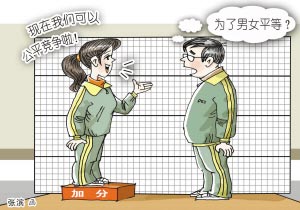對于合理性的要求,則應該再仔細商榷。“女孩在升入高中或市管各類中專、職業(yè)學校時,筆試總成績加2分!睆默F(xiàn)實來看,女孩的考試能力并不比男孩差,這樣的差別待遇,可能不具有說服力。