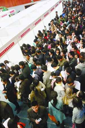 今天上午,首都師范大學(xué)體育館召開2009年中小學(xué)教師專場招聘會,1000個教師崗位面向應(yīng)屆畢業(yè)生現(xiàn)場招聘。招聘信息引來眾多應(yīng)聘者,盡管工作人員將每排人數(shù)調(diào)整為6至10人,進場隊伍仍然排出七八百米長。