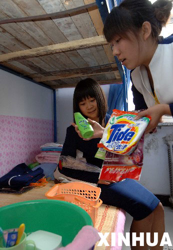 為迎接這些災(zāi)區(qū)學(xué)生的到來,石家莊外語翻譯職業(yè)學(xué)院專門成立了“迎接四川災(zāi)區(qū)同學(xué)”籌備組,投入10多萬元為他們做好食宿安排,采購了被褥、蚊帳、睡衣、洗漱用品等日常生活用品,并且準備了專項資金,每月將為每個學(xué)生發(fā)放500元生活補助。