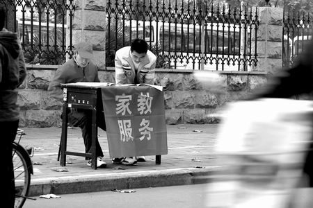 “暑假前半個月,招工廣告就遍布校園。南方的加工企業(yè)和保安公司的居多,所以,想暑假掙些錢又不想呆在學(xué)校的同學(xué)報名踴躍。而不想離開學(xué)校的同學(xué)有的做家教,還有一些有經(jīng)驗的高年級學(xué)生辦起了暑假輔導(dǎo)班,用自己大學(xué)生的知識優(yōu)勢輔導(dǎo)中小學(xué)生。但更多的同學(xué)是通過街頭小廣告或勞動力資源市場尋找適合自己的工作崗位!膘杳系抡f,暑假期間,學(xué)校因為有招生等工作,也會提供一些打工崗位,但數(shù)量非常有限,大學(xué)生打工的整體情況很難把握。