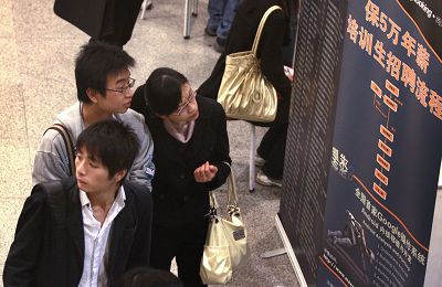 圖片說明:畢業(yè)生密切關(guān)注著就業(yè)信息