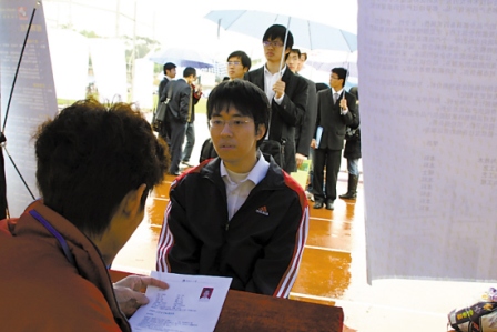 在深圳他沒有找到理想的去處,又踏上火車,來到廣州。在廣州已參加三場招聘會,他拿到了一份面試通知單。他說自己會盡力爭取留下,“他們只要愿意要,不管什么待遇,我都不放棄!” 本報(bào)記者 夏楊 實(shí)習(xí)生 支少容 郭梅美