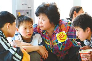 由于收留學(xué)生的聚集地管理嚴(yán)格,沒能獲準(zhǔn)進(jìn)入學(xué)生聚集的核心區(qū)域,團(tuán)市委12355熱線的專家咨詢團(tuán)成員商議,在九州體育館外圍主動出擊,為災(zāi)民聚集地孩子服務(wù)。
