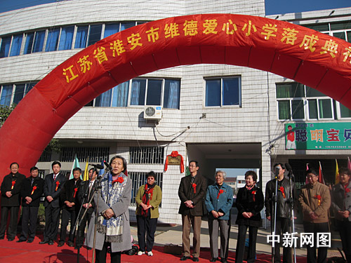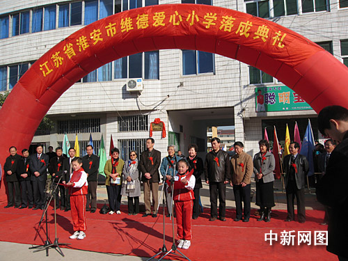 中新網(wǎng)淮安11月28日電 (記者 淮黎霞)一所名為“維德愛心小學”的落成典禮二十七日在周恩來總理的故鄉(xiāng)江蘇淮安市舉行。這所小學的捐贈人是臺胞張介玉先生和“臺灣愛心第二春文教基金會”,并由中國僑聯(lián)經(jīng)濟文化基金會興建。
