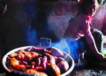 孫家有5畝地,各種一半的紅薯和苞谷,不夠全家5口人和1頭肥豬的口糧,在短暫的雨季,能種一些白菜、青豆和小瓜。旱季來臨,吃的只有早先曬干的白菜,這個時候?qū)O父需要去村外的礦山里打3個月工,每天30元工錢,用來買些大米和供3個孩子入學(xué)。