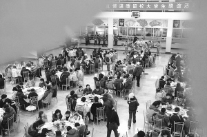 該校怡園餐廳28張餐桌上,羊肉火鍋、三鮮鍋?zhàn)、牛肉煲……擺得滿滿當(dāng)當(dāng),前來(lái)賀歲的團(tuán)省委和各高校及愛(ài)心企業(yè)代表挨桌敬酒,給每位同學(xué)發(fā)了200元紅包。