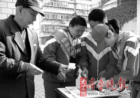 濟(jì)南市育園學(xué)校是一所專門接收弱智兒童的特教學(xué)校。校長(zhǎng)楊青青介紹,賣報(bào)活動(dòng)始于職教班數(shù)學(xué)老師杜桂芝的一次賣報(bào)紙的實(shí)驗(yàn)課。后來考慮到智障孩子要面臨謀生、就業(yè)的問題,學(xué)校就把“賣報(bào)紙”設(shè)為職教班的校本課。四年下來,學(xué)生們?cè)谫u報(bào)中運(yùn)用數(shù)學(xué)知識(shí),溝通、計(jì)算能力得到顯著提高,“一直堅(jiān)持賣報(bào)的房琪同學(xué)患有腦癱,通過賣報(bào)受到啟發(fā)后,他現(xiàn)在每個(gè)周末都去廣場(chǎng)賣菠蘿,最好的時(shí)候一天能收入幾百元!
