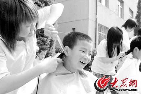 一到濟南師范學校,小羅誠就發(fā)現(xiàn),細心的老師已特意把他安排在了三年級二班。記者趕到時,學生志愿者正在給羅誠和小伙伴們理發(fā),隨后去洗澡,有的孩子還將進行查體。