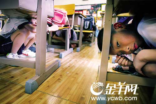 小學生演練防震屢屢“笑場” 練三遍才認真(圖)