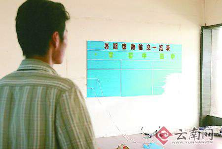 昨日下午,記者發(fā)現(xiàn)這家位于環(huán)城東路云南大世界大樓的家教中介公司早已人去樓空,但《暑期家教信息一覽表》還醒目地貼在墻上。