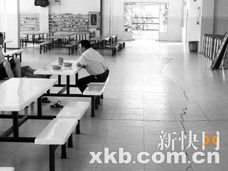 食堂地面出現(xiàn)長(zhǎng)長(zhǎng)裂縫。李詠祁/攝
