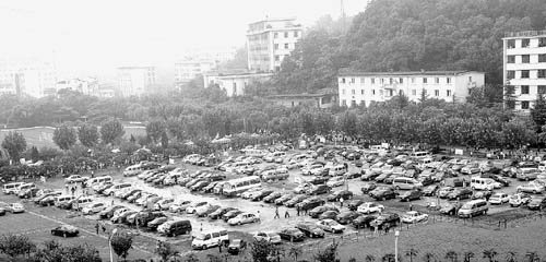 家長(zhǎng)開車送孩子報(bào)到 操場(chǎng)停滿轎車如同車展(圖)