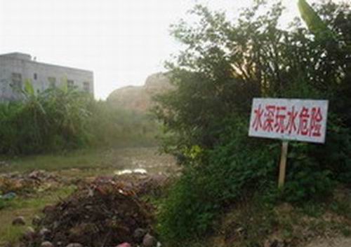 出事后,有關部門已在水塘周圍豎立了安全警示牌