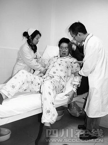 從9月24日起,李福忠再也沒有時間輸液,原本預(yù)定國慶期間到成都做檢查也因洪水而作罷。10月底,李福忠感覺下身的包塊開始隱隱作痛,11月2日,他終于在妻子陪伴下來到華西醫(yī)院做檢查。兩個老專家給他做了初步檢查之后告訴他:情況非常嚴(yán)重,初步懷疑是惡性腫瘤!李福忠住進了華西醫(yī)院。