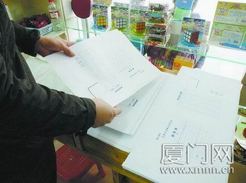陳同學(xué)和蔡同學(xué)用的都是文具店里常見的一種白色書皮紙,課本用的是純白的,練習(xí)冊(cè)因?yàn)槔蠋熞怯洺煽?jī),必須用一種印有成績(jī)登記表的。“校長(zhǎng)說可以用掛歷紙,不過老師都讓我們用買的那種紙!辈掏瑢W(xué)說。