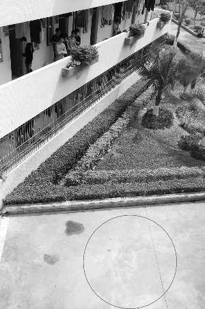 昨日中午12時(shí)許,記者趕到事發(fā)學(xué)校。在事發(fā)宿舍樓2號樓南側(cè)圍墻位置,仍可看見地面上殘留有一大攤血跡。相關(guān)部門工作人員正在宿舍樓內(nèi)進(jìn)行調(diào)查。據(jù)該樓一名學(xué)生介紹,他們在凌晨6點(diǎn)多聽到外面很吵,跑出來一看,才知道是有人跳樓了,隨后很快就看到救護(hù)車和警車陸續(xù)趕到現(xiàn)場,據(jù)說跳樓的就是該校學(xué)生,已經(jīng)當(dāng)場死亡。