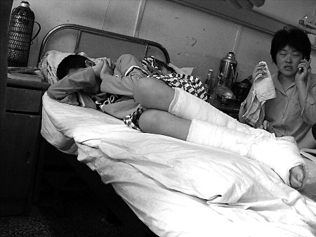 病床上的小峰臉上稚氣未脫,神情輕松,而莊女士則一臉的憂愁。一個(gè)多月連續(xù)陪床使她看起來(lái)非常疲憊。