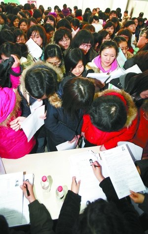 市人事局新聞發(fā)言人張祖德介紹,用人單位對(duì)研究生、本科、?茖W(xué)歷的要求分別可達(dá)42.6%、44.3%和13.1%。今年北京生源將達(dá)到9萬(wàn)人,其中碩士研究生以上學(xué)歷的不到1萬(wàn)人、本科畢業(yè)生有4.4萬(wàn)人、?飘厴I(yè)生人數(shù)有3.8萬(wàn)。目前來(lái)看,就業(yè)形勢(shì)比較嚴(yán)峻的主要是專科畢業(yè)生。自上月以來(lái)已經(jīng)舉行了 150場(chǎng)針對(duì)應(yīng)屆畢業(yè)生的專場(chǎng)招聘會(huì),所提供的8萬(wàn)余個(gè)崗位中已有四分之一達(dá)成意向。 RB156