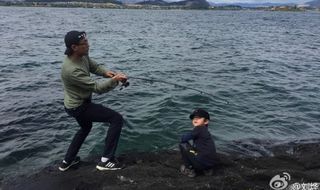 劉燁帶兒子諾一釣魚